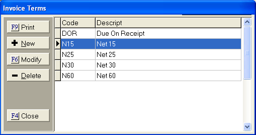 From the menu bar of CollectMax, select Definitions, Codes and Invoice terms