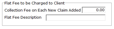 If your Client allows you to earn a flat fee when an account/claim is added, enter the amount to be added. When a new account/claim is added, a CFEE for the amount will be posted automatically to the claim.