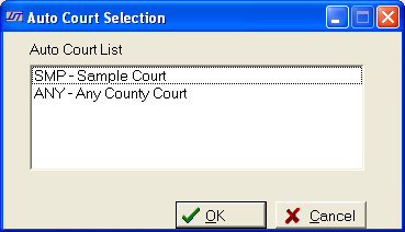 By Client/Plaintiff Zip: Auto Court will select the court based on the Zip Code of the Client unless there is a plaintiff on the account then the court will be assigned by plaintiff's zip code.