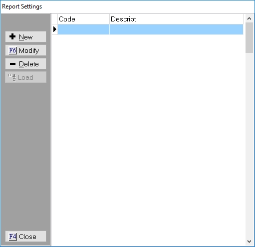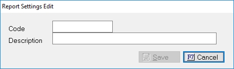 Click the button and enter the Report Setting Code and Description.