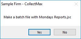 Note: The workstation this script runs on must be running at the time the batch file is slated to run. The process will be visible while running. If someone is in all instances of CollectMax, the process will not be run.