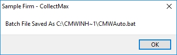 The batch file will be created in the CollectMax directory on the workstation.