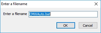 The batch file will be name CMWinAuto.bat. If you are using more than one script or would like to name it another name, enter the name you would like with .bat as the file extension.