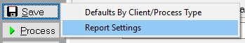 After selecting the proper selection criteria for your process, click the Save/Save Settings/Settings Button and select Report Settings