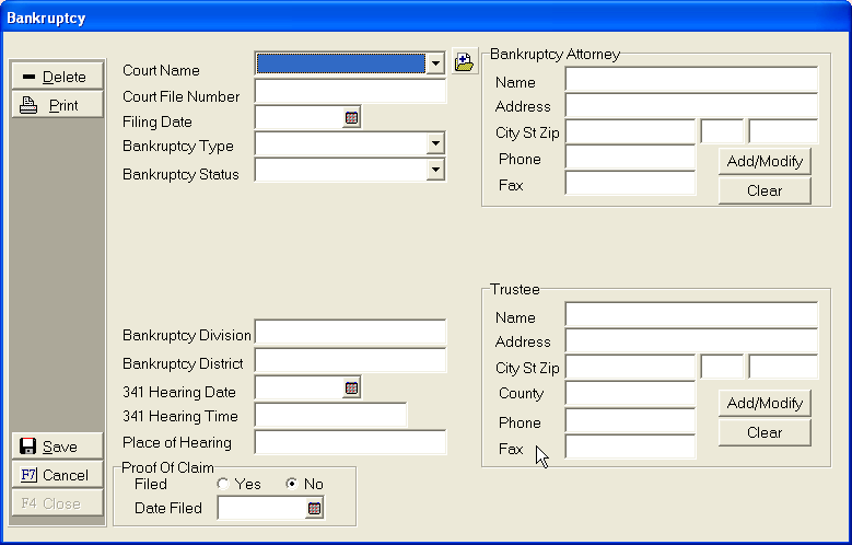 button to add a Bankruptcy Trustee.