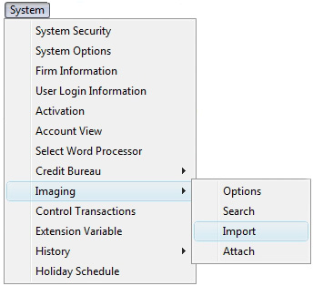 The Batch Image Import allows users to import images from a directory directly into CollectMax attaching them to the proper debtor accounts. The import is based on file name and file name length.
