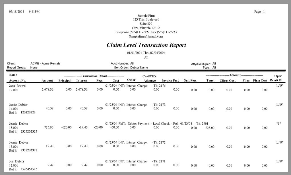 Claim Level Transaction Report Sample