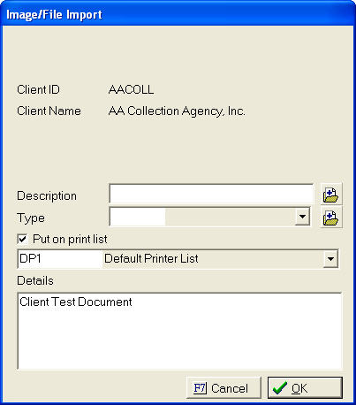 The feature allows users to request a document to be printed or put on the print list to be printed later. Only Client Level Documents appear in the Document list. To create this type of document, see Client Level Documents.