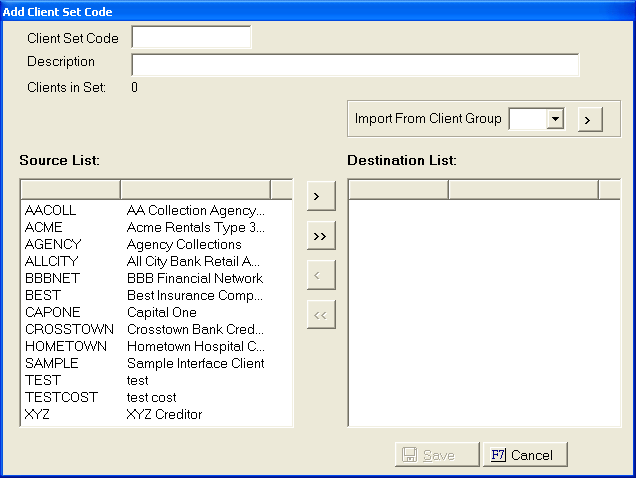 Make the changes to the Client Set. Use the arrows to add or remove the Client to the Destination List.