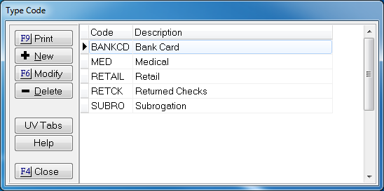If the type code is currently assigned to any accounts users must replace them prior to deleting the code. CollectMax will give users a list of the accounts that must be changed prior to deleting this code.