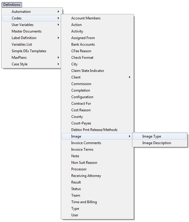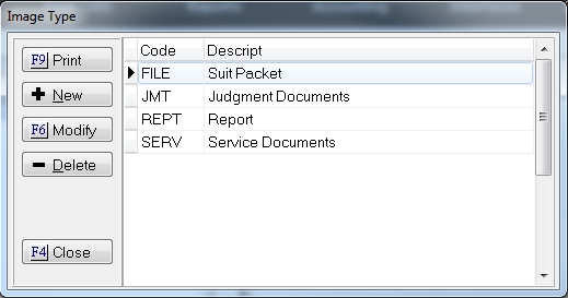 to display the Image Type Code Screen.