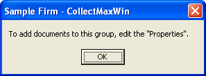 A message box will be displayed directing users to Properties to finish the Document Group setup.