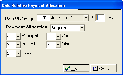 Set an automatic payment allocation change on the date of a certain event like Judgment.