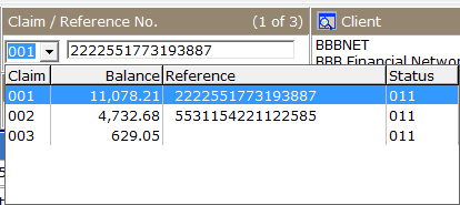 The Claim/Reference section lists the claim and reference number of the account you are viewing and the number of claims attached to this account. The reference number is typically the account number given by the original creditor of this account. To view another claim, click the button and select another claim.