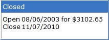 The Open/Closed Section list the open and closed date of the selected claim. Each Claim can have a different open and closed date.