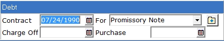 The Debt Section lists the Contract Date, Contract For, Charge Off Date and Purchase Date. The Contract Date is typically the date the debt was incurred. The Contract For is typically what the debt was for although this field does not have to be used for that purpose and can be used to insert codes or freeform text. The Charge Off Date is typically the date the Original Client Charge Off the Debt to Bad Debt internally. The Purchase Date is typically the date your client or your firm purchased the debt.