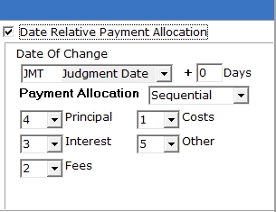 CollectMax allows you to set the balance component allocation of the proceeds of the payments posted to accounts under this client. These settings should be set to what the Client prefers most often. These settings can be overridden when posting a payment.