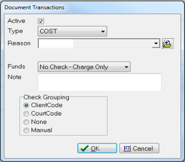 Note: Document Transactions will be posted regardless of the funds availability in monitored Firm Operating Accounts. Users using the Firm Operating Account monitoring are advised to verify there are enough funds prior to using this feature.