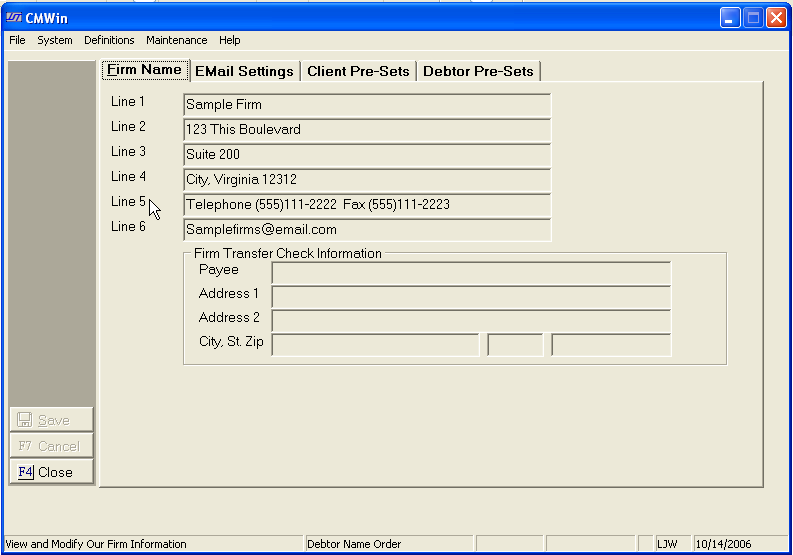 to display the Firm Information Firm Name Tab.