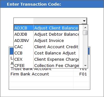 Note: If one of these transactions does not appear in the list , please check the Client Cost Settings. This transaction could be disallowed.
