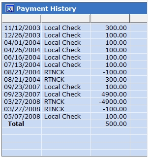 The Payment History Section lists all payments posted on this claim in CollectMax. To view more detail or to print a Payment History Report click the