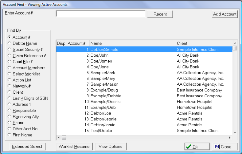 Find Debtors screen will appear.