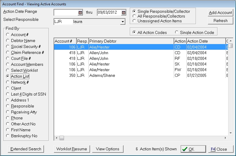 CollectMax allows users to find accounts that are on the users action list.