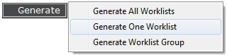 3. From the menu, select to generate All Worklists, One Worklist, or a Worklist Group.