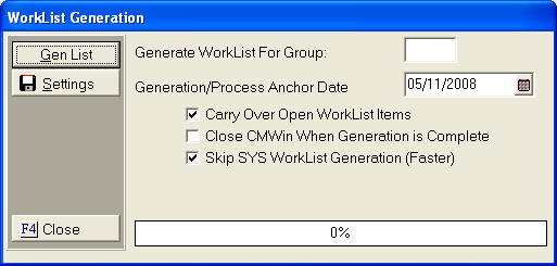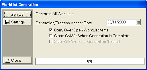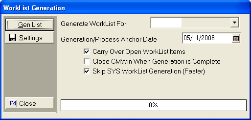 4. If Generating All Worklists, the Worklist Generation Screen will appear.