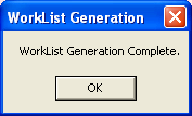 9. Once the worklist have been generated, a message box will appear.