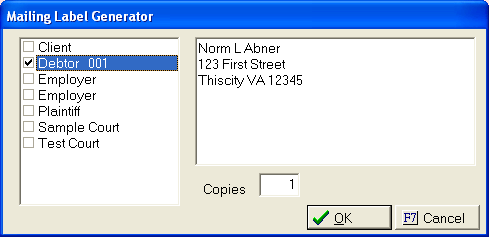 CollectMax allows users to request several types of mailing labels from a debtors account to go to a print list to be printed later.