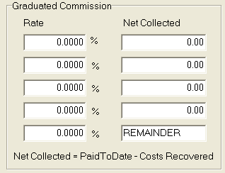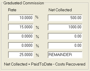 This selection will earn a graduated commission based upon net amount collected on claim. Net collected equals the Amount Paid To Date minus the Cost Recovered. Complete the graduated commission table: