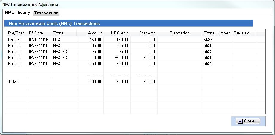 18. Review the NRC and NRCADJ transactions posted for this claim. If any of these transaction are now recoverable, click the Transactions Tab to post a NRCADJ adjustment.