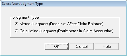 7. If there is no judgment information exists for this claim, the Select Judgment Type Screen will be displayed.