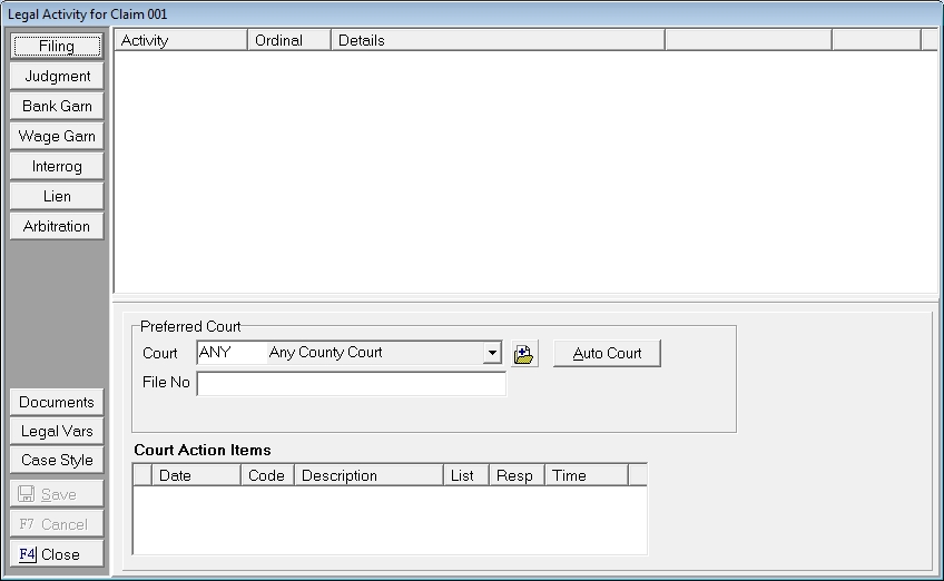 Note: Selecting the proper claim before entering the filing is essential. The proper claim cannot be selected from the Litigation Screen and once a filing is entered, you cannot move the filing to another claim without deleting and re-enter it.