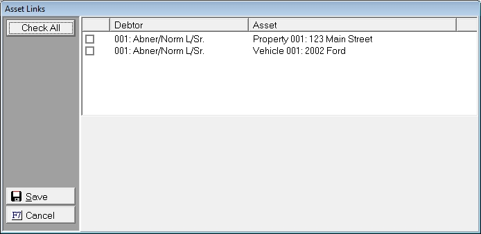 box next the correct Debtor/Asset Combinations that are included in this Lien. Click the