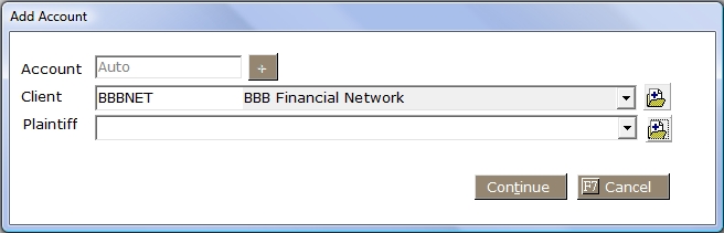 You will be unable to continue to add the account until the proper plaintiff is selected. If the plaintiff is unavailable in the list, you will need to add the plaintiff to the account members by clicking the button. See Account Members.