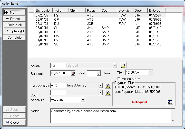 11. Type any notes specific to this Action in the Notes field.