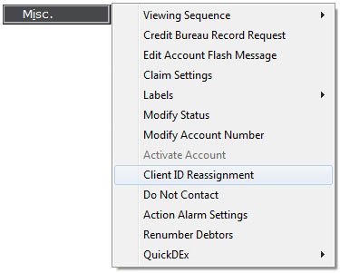 CollectMax allows users to reassign a debtor account to a new client once certain conditions are met.
