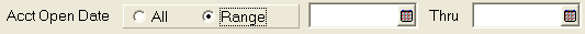 If Range is selected, two date filed will be displayed on the screen. Enter or select the earliest open date in the first field. Next, enter or select the latest date in the second field. Only accounts with open dates on or between the date entered will be eligible for this worklist.