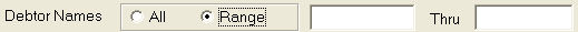 Select Range if you would include only accounts that the primary debtor's name fall with in a selected range.
