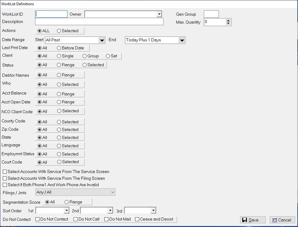 This option is only available to firms with the NCO Interface. Use this selection to narrow the selected actions for this worklist by the NCO Clients attached to the accounts.