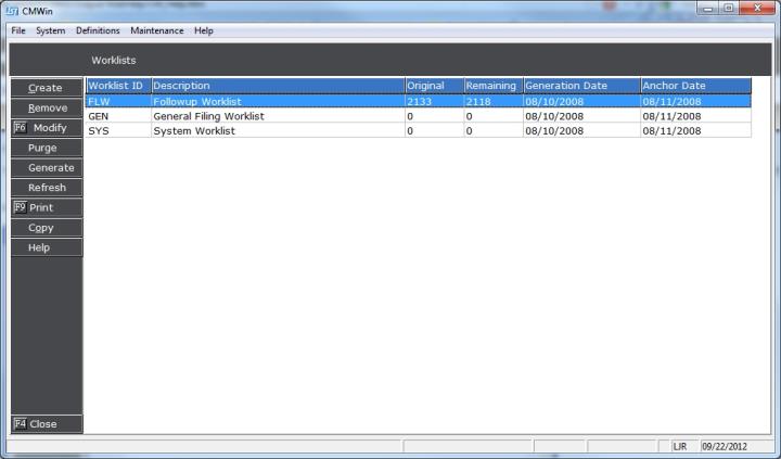 3. The Worklist ID is unique file name assigned to the list. Type the name of the worklist to be created. If the worklist belong to a specific operator, you may want to use their initials to identify ownership. CollectMax restricts this ID to up to four characters or numbers.