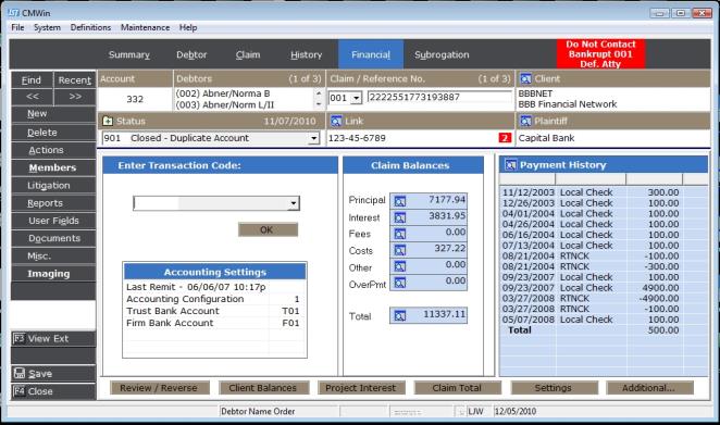 Note: If the debtor payment was paid through a receiving attorney, please review How to Enter a Debtor payment paid through a Receiving Attorney kbefore post the transaction.