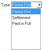 . If selecting the Paid In Full type, CollectMax will automatically populate the amount to payoff the account in the Amount Field. If the Payment Type selected is Paid In Full, the system will automatically fill in the payoff amount.
