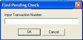 Type in the transaction id to find the pending check entry. The transaction id can be found in the debtors history on the corresponding transaction entry.