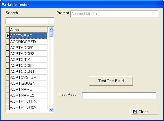 CollectMax allow users to test the document variables while on a debtors account to see what information a document variable will return.