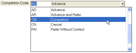 the Completion Code from the list.
