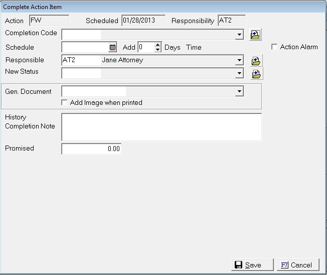 15. Enter any promised payment amount in the Promised field.