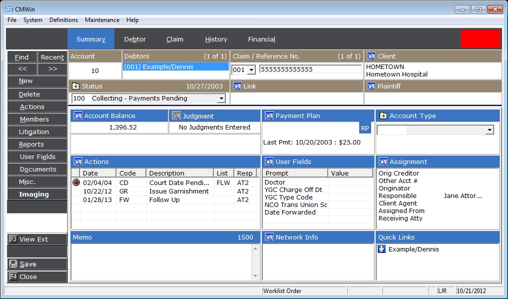 be taken to the Summary Tab of the debtor's account. In